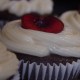 Fill the cooled cupcakes with white chocolate mousse. I use a Wilton piping tip (#230, I believe) and a pastry bag. Alternatively, you could fill the cupcakes by the “cone method” – for me, this takes roughly 3x longer than piping in the filling, but YMMV. (Note: the recipe I’ve given will leave you with more than enough mousse for 24 cupcakes; you could maybe halve it, but I like to have extra just in case the piping bag explodes or whatever.)